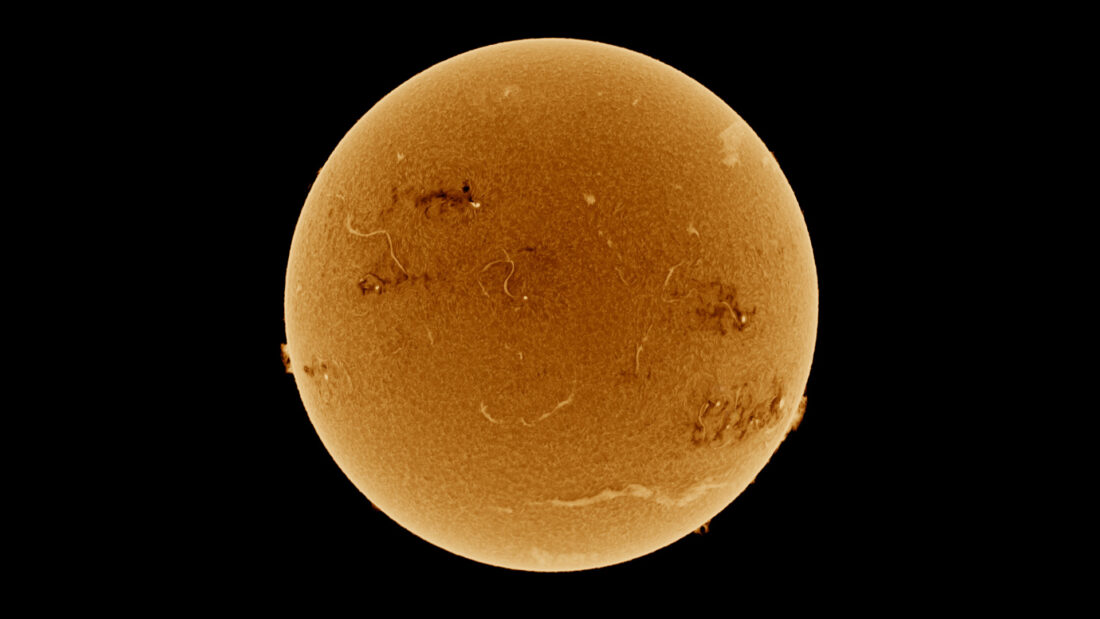 Fotografía del disco solar, tomada el 03/09/25 en H-Alpha