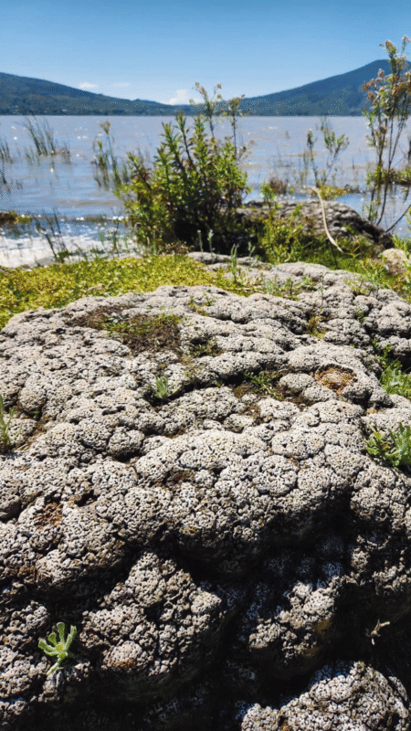 Description: Estromatolitos fotografiados en el Lago Pátzcuaro, durante una de mis primeras salidas de campo en 2024. Son una de las primeras manifestaciones de la vida en la Tierra y fueron responsables de oxigenar la atmósfera primitiva.